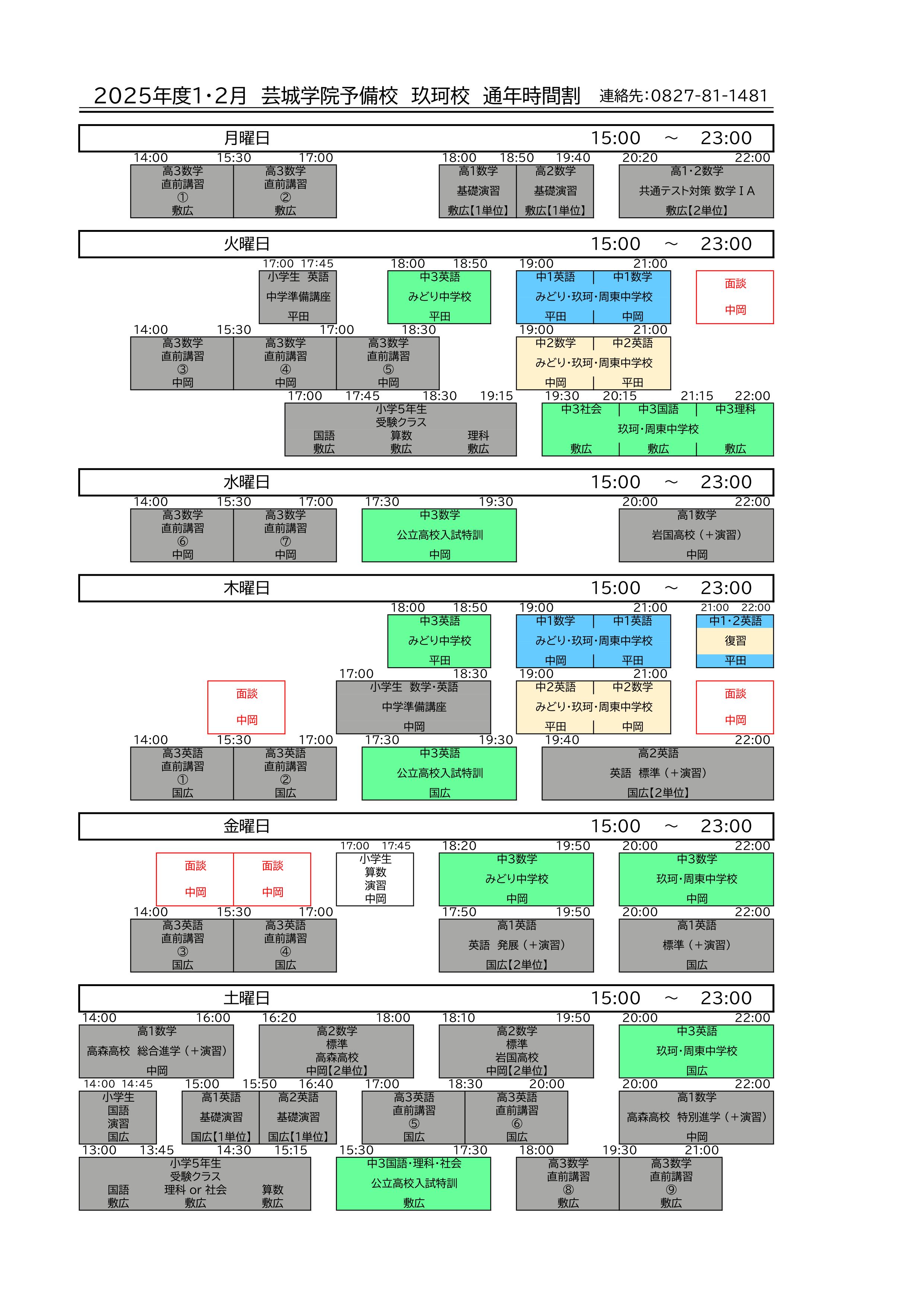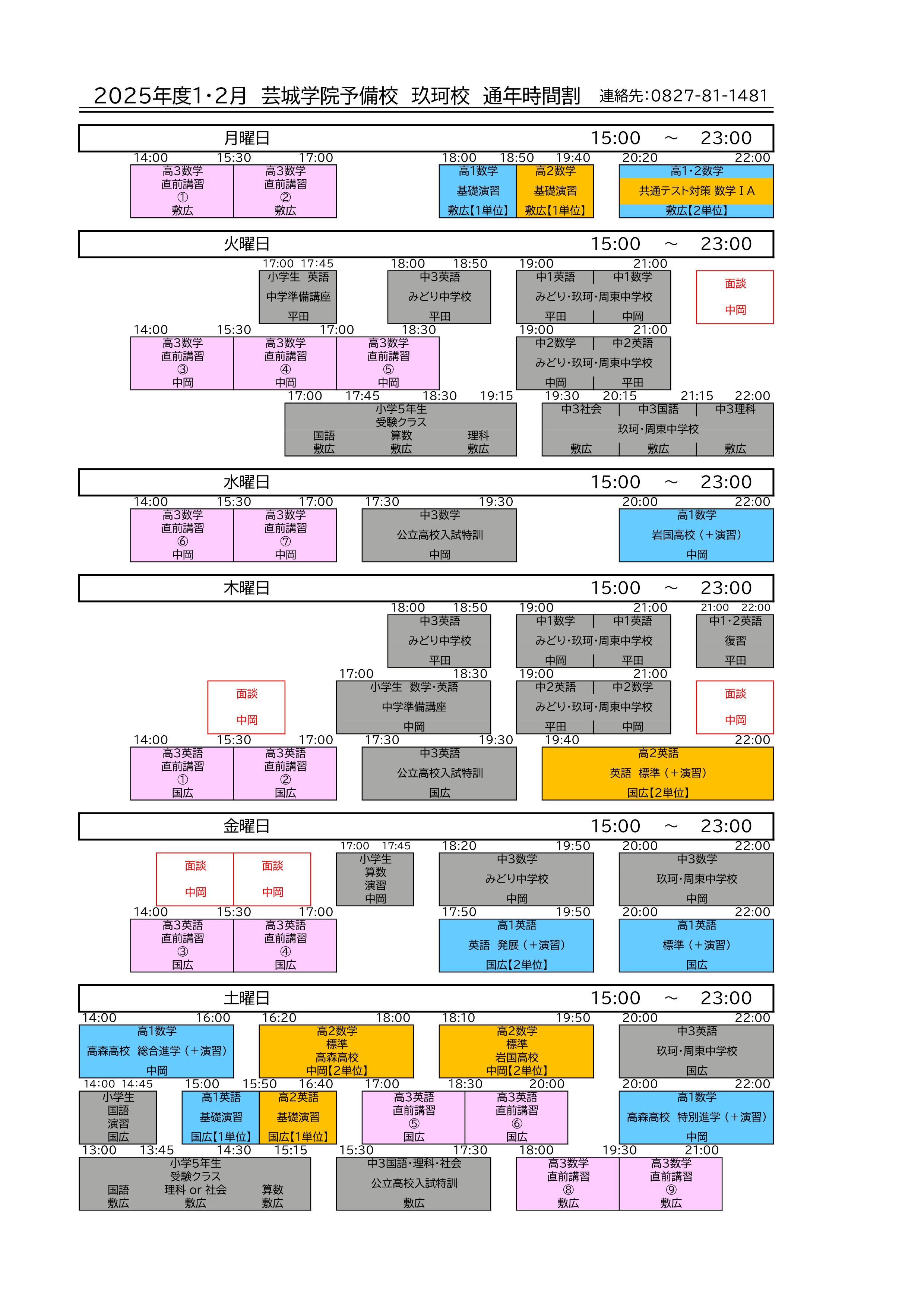 開講時間:月曜日 ~ 土曜日/15:00 ~ 22:00