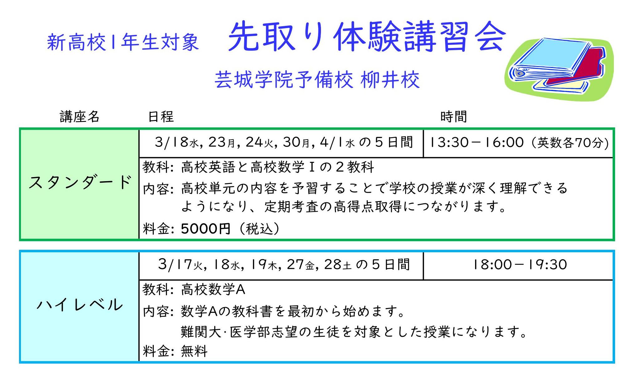 新高校2年生・新高校3年生 春期講習会 申込受付中!